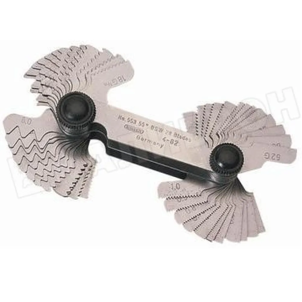 Технические характеристики Набор резьбовых шаблонов комбин. для дюйм. и метрич. резьбы из 52шт. М60°(0,25-6,0), D55°(4-62) "CNIC"