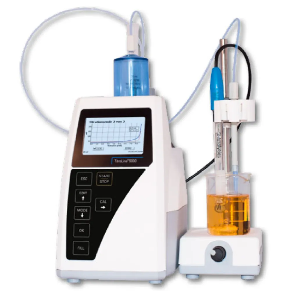 Автоматический титратор SI Analytics TitroLine 5000 – это идеальный и очень экономичный титратор для выполнения ежедневных рутинных анализов. Прибор представляет собой комбинацию точной автобюретки, рН/мВ-метра и встроенного микрокомпьютера. Предшественник TitroLine 5000, TitroLine easy, всегда был первым выбором, если вы искали очень простой в использовании автоматический титратор для любого применения. Для получения точных и быстрых результатов не требовались специальная подготовка или глубокое знание автоматического титрования. Это и многое другое предлагает новый автоматический титратор TitroLine® 5000.
