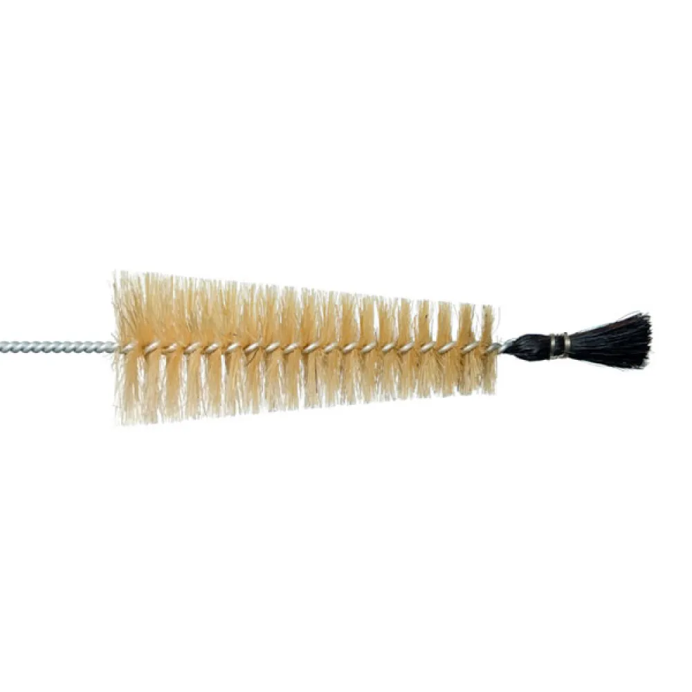 Лабораторный ёршик Reitenspiess Bürsten конической формы предназначен для чистки пробирок. Для его изготовления применяются только качественные материалы, в частности, используется неокрашенная натуральная щетина. Она устойчива ко многим химическим веществам, кислотам и щелочам. Диапазон температур применения - до 150 °С.