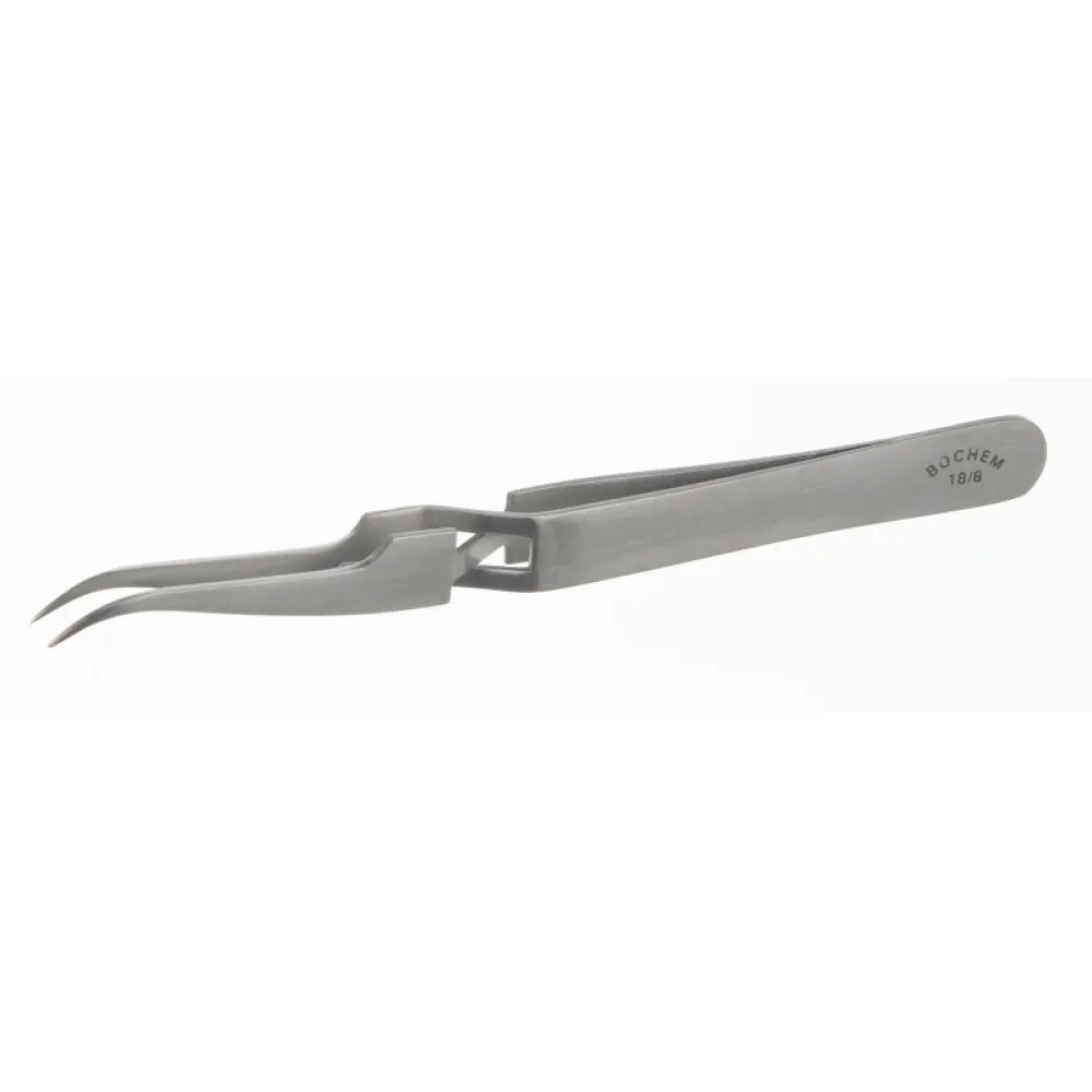 Пинцет Bochem прецизионный, острый, изогнутый, самозахватывающий из нержавеющей стали, длина 120 мм (Артикул 1641)