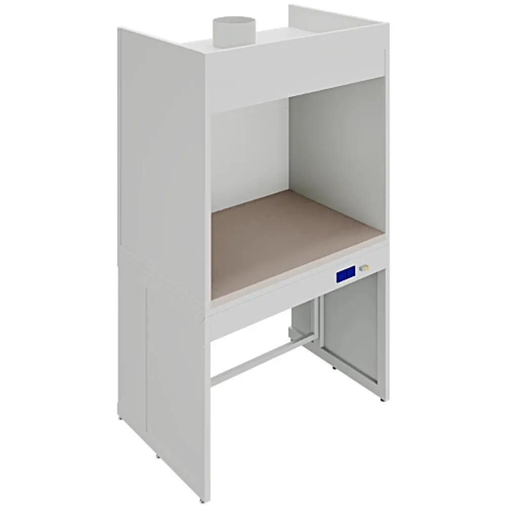 Данный вытяжной шкаф предназначен для размещения в нём муфельных печей, сушильных шкафов и других нагревательных приборов, не требующих дополнительного защитного экрана. Изделие разборной конструкции, состоящее из верхней части – вытяжной камеры, и нижней части – каркаса.Основой изделия является сборно-разборный металлический каркас на регулируемых опорах для фиксации и компенсации неровностей пола, окрашенный порошковой краской.Вытяжка воздуха осуществляется из верхней части камеры для удаления из рабочей зоны газов и паров.В стандартной комплектации шкаф поставляется без тумбы.