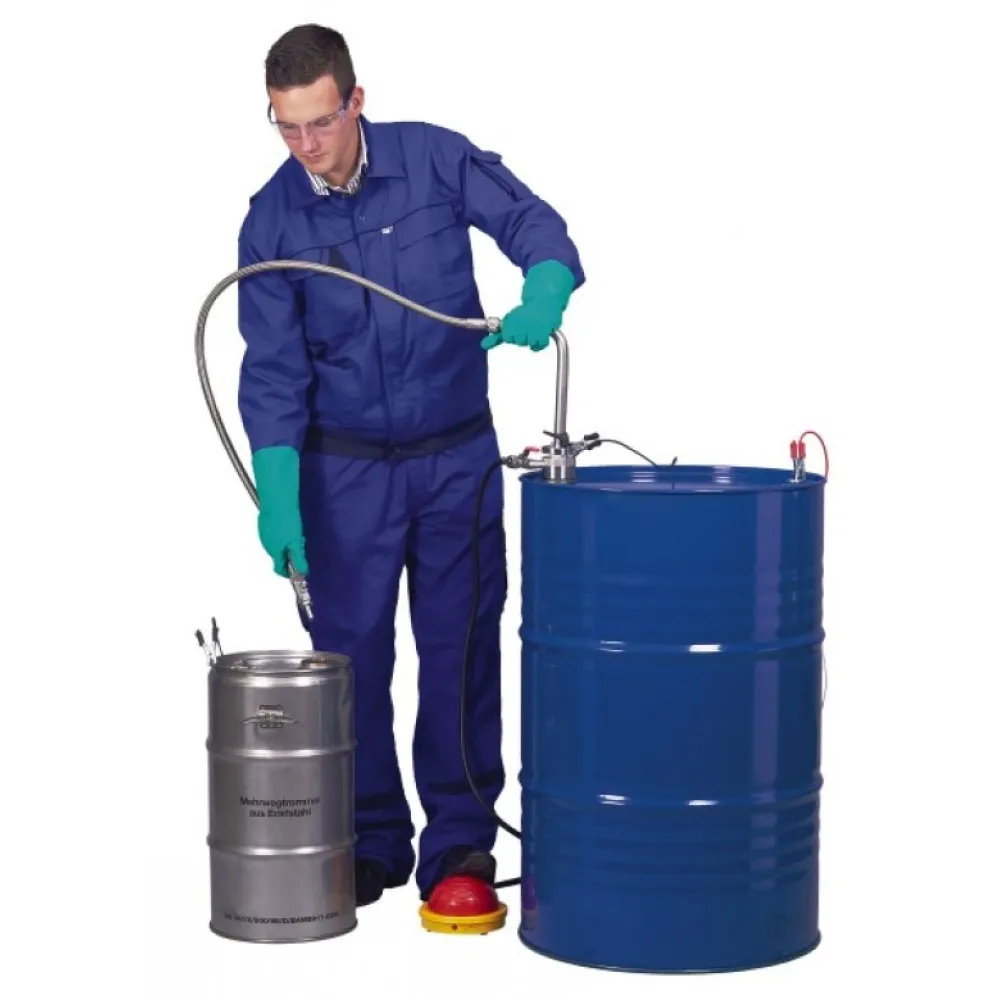 Все части насоса, вступающие в непосредственный контакт с жидкостью, изготовлены из нержавеющей стали (1.4301) и ПТФЭ. Резьбовое соединение и запорный кран обеспечивают герметичность соединения насоса и контейнера. Такая конструкция помогает также избежать попадания паров перекачиваемой жидкости в окружающую атмосферу.